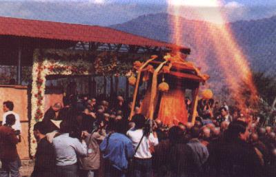 一九八六年(丙寅年)二月十一日(正月初三)晚上,正当做晚课完毕,静坐之际,我忽然看见金光缭绕,出现了一位菩萨,法相庄严,全身放射金光,头上金光光轮巨大,但他全身毫无装饰,十分朴素,胸前挂著菩提大念珠,他慈祥温和地望著我微笑,我却不认识他是谁。