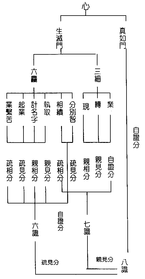 世间出世间所有色法。皆从一心生起终必还归于一心。弥勒菩萨云。尽空如来国土。净秽有无。皆我心所现。法相宗亦说。心之所缘。唯心所变。但彼不许所变之色。还归一心。而云生死无有了期。今借起信论三细六粗。显净秽唯心现义。古解唯识之识。虽曰阿赖耶。唯依生灭门论八识。有违生灭不生灭和合名阿赖耶。