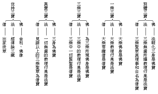 (五)真实三宝。即前面所说的同体、别体、一乘、三乘所有三宝的实义,所以不取有漏的法和僧。门