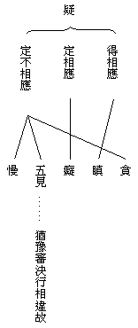 (5)慧:于所观境,简择为性,断疑为业。即于所观察的功德、过失、俱非境中,由慧推求得到决定,这是性的作用;由此消除疑惑,所以说断疑为业。论说由慧断疑,也是约殊胜的慧说,实际上疑心俱时亦有慧故,于非所观察的境,愚昧心中,则无慧起;但非一切愚皆无,以邪见者痴增上故,虽愚亦有慧俱。若愚而又昧的心即没有慧了。