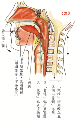 ・假如不收下巴,甚至仰头角度太大时,就会使此弯曲更曲折,甚至被压阻,脑血流就不足,脑功能变差,甚至退化(老年失智症)。而很不幸,人常忽略此‘极重要’之事,而去追逐外境‘不重要’之事。(如图)