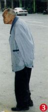(1)颈椎较曲折(向前塌入),甚至后颈部,可见皮肤折痕(横纹),(如吸管之折痕)。(如图1)