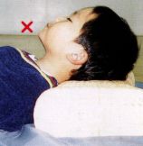 平日仰头太过者―简易调整颈椎法: ‘不收下巴’的孩子(仰头看电视)(仰卧),颈椎太向前塌,容易感冒、咳嗽、脑力降低,且易患眼、耳、鼻、口,(如扁桃腺),咽喉之疾病。 |
