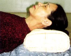 矫正法:(矫正太前塌的颈椎) 可在轻松愉快中,将枕头(勿太软)(外软、内硬)放在颈部(枕骨)(较靠‘头顶’)(收下巴),让‘颈椎’完全放松,依自然重力(地心引力)颈椎可拉开,复位,恢复正常。 |