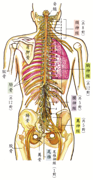 由脊髓而出之神经,分布到内脏、四肢:(故非常重要!)
