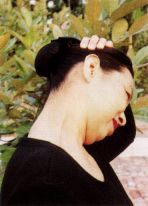 ■若拜佛俯首时,下巴不能贴胸者,(多因长期仰头,肌肉,韧带缺乏弹性、缩短)有空暇时,宜常以手辅助调整。(如开车塞车时,正好做此调整)―