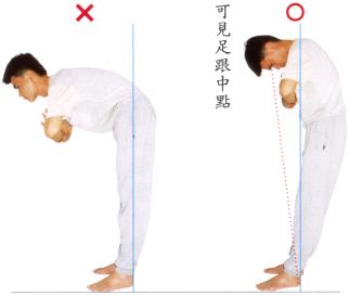 二、若躬身时,下半身(小腿―膝―大腿―腹)不先后退,则随著上身向前弯,重心必偏移向前(超出底面积外),为了平衡,趾、腿部肌肉很吃力,紧张收缩会压迫神经血管,非但不消除障碍(消业障),反增压迫。且下一步曲膝时,膝会超出脚趾前(重心向前偏移)膝及腿承载重量,非常吃力,腿酸、膝痛难以维持久。