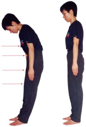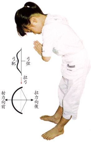 因很多人不会作此‘脊椎后拱’之躬身动作,不能体会其要领。故于此略作说明: