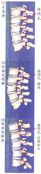 解剖图(比较三种不同姿势时‘椎间孔’之空间大小)