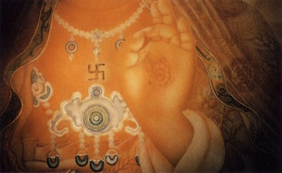 ■大乘经之说,谓此系佛及十地菩萨胸上之吉祥相,三十二相之一。小乘之说,则此相不限于胸上。