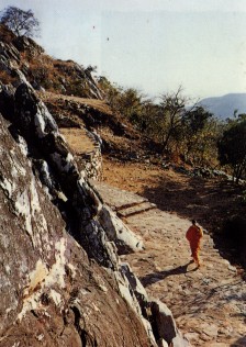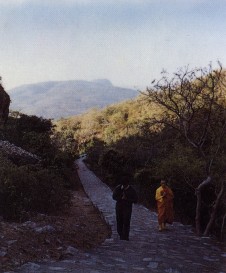 望著前面一个个朝圣者,下了山又攀上对面的和平塔,亲爱的朝圣者,当您登过灵鹫山,带著不可思议的妙法回到娑婆―