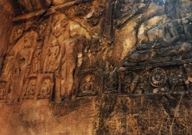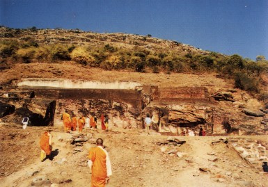 离开了灵山,一点点路就到了七叶窟,这是昔日阿^世王供养摩诃迦叶等大阿罗汉们,结集经典的石窟。多奇妙的石窟啊!它曾经被用炸弹来炸,却炸不开,修行的力量岂是一个小小的炸弹所能破坏。同行的朝圣者,号称‘妈咪’的,在洞内哭了,一个五十岁的人了,来到这样的地方却如同小宝宝般地号啕了起来,多美啊!又甜蜜又痛啊!真善具足、何美胜斯啊!
