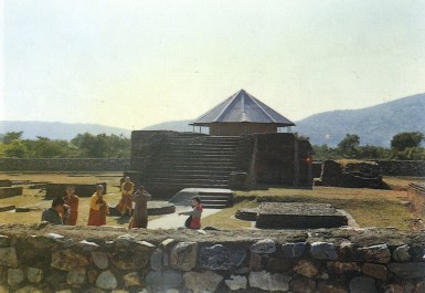 坐上车,也是一会功夫便到了竹林精舍。如果这儿还有竹林,如果‘他们一班人’都还住在这儿,而又要留我们下来长居,那该有多好啊!据说这是佛在世时,一位迦兰陀长者布施的林园,我不容易记住是第几世纪谁建的精舍,因为事实上,一座伟大的建筑,绝不是一个人可以完工的,它必然聚集了众人的心愿、众人的血汗、众人的虔诚。不论是那一位王,是十六观经提到的那一位也好,或是别的长者也好,他一定有著一颗懂得‘圣人在世,昙花一现’的心灵,他一定感受到若不及时把握,必会失之交臂的迫切,所以他发心来建这样一个地方。