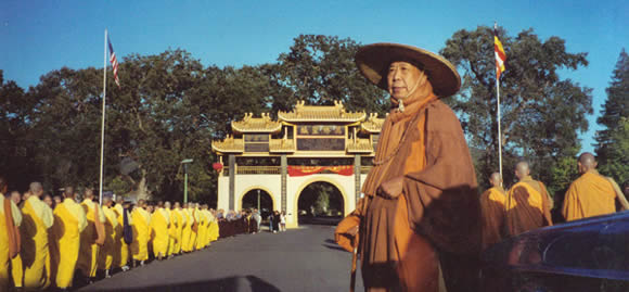 一九六八年,成立“暑假楞严讲修班”,有华盛顿州州立大学学生三十余人,远来学习佛法。结业后,美籍青年五人,恳求剃度出家,创美国佛教史始有僧相之记录。随着日益扩大的僧团,原有的佛教讲堂不敷使用,于一九七○年成立金山禅寺,一九七六年购置国际性大道场万佛圣城;尔后金轮圣寺、金佛圣寺、金峰圣寺、华严圣寺、法界圣城等各分支道场相继成立。上人不遗余力致力于弘法、译经、教育等事业,广建道场,培植人才,订立宗旨。集四众之真诚,尽未来际劫、虚空法界,光大如来正法家业。
