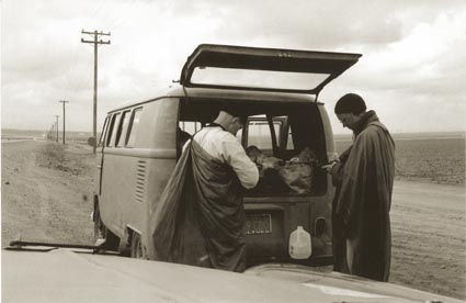 恒实、恒朝两位行者,为祈求世界永久和平, 于1977年5月,从南加州洛杉矶金轮寺沿途三步一拜, 朝礼至北加州万佛圣城。全程八百余英哩, 经过两年零六个月的时间,终于1979年11月抵达万佛圣城。 他们的精进,感动无数的人发菩提心,进而学习佛法。