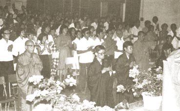 在北海举行法会之踊跃场面。图为法会前之礼佛请法。