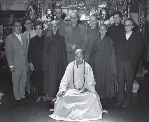 在“暑假楞严讲修班”结业之后,有五个美国人出家,1969年我派他们到台湾海会寺去受戒,这是西方人正式有比丘(尼)的开始。1968年的新年,我就计划暑假讲《楞严经》,我在正月初一对信众说:“今年美国的佛教,会开五朵莲华!从这五朵莲花开始,将来会开出来千万朵,把佛教传到西方去!”当时美国没出家人,一般人也不知道我说的是什么意思;等到秋天,有五个美国人出家,他们才明白,说:“师父在正月初一讲过,今年佛教会开五朵莲华;现在有五个人出家,原来是指他们!”以后陆续又有人来出家。