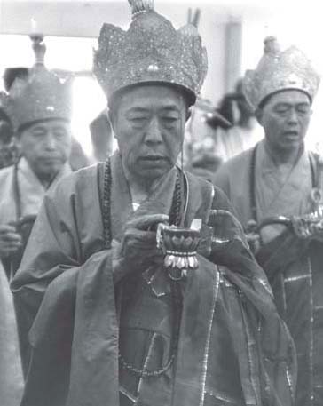 我看他魔障病发作了,我不愿意他再回去做那种事情:“岂有此理!他跟我出家,你们这些妖魔鬼怪还来麻烦他!”所以我就和他的那些狐仙、黄仙斗法。有一个十三岁的皈依弟子,看见我和他们斗法,也想来帮我的忙,却被他吹了一口气,吹得肚子痛得不得了,躺在地上奄奄一息,我又得分神救这个皈依弟子。在二十一天里,我得罪了很多妖魔鬼怪、山妖水怪。我不食不睡,终于治好他的病,而他的五眼从此睁不开了!