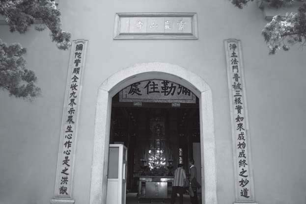 到了宁波沈家门,我找到一艘船,搭船不需要钱,还有饭吃,有地方睡觉──睡在甲板上,我终于到普陀山了。中国有四大名山,五台山的寺院有几百处,峨嵋山、九华山,普陀山亦然。五台、峨嵋、九华三大名山,我是闻名而已。普陀山的山上有很多庙宇寺院和出家人,观音菩萨常常在那里显圣。好像普济寺的大殿,看它不大,却可以容得下一千人,就是有一万人也可以;甚至有十万个人,这个大殿还是容得下,这是一个不可思议的宝殿。