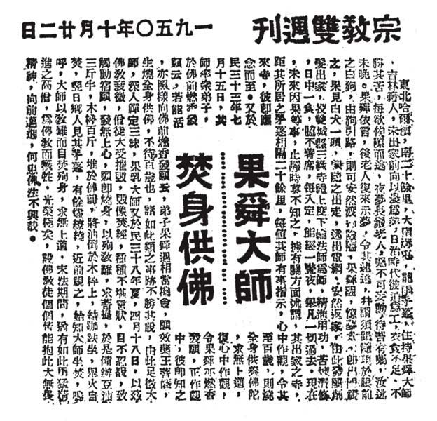 【附录】当时香港“华侨日报”的宗教双周刊曾报导果舜自焚之事。