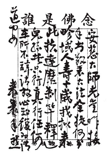 久疏音候,近维利生如意为念!兹寄奉近年增刻佛祖道影壹部,存阅留念,并希自利利他为道。珍重!此候