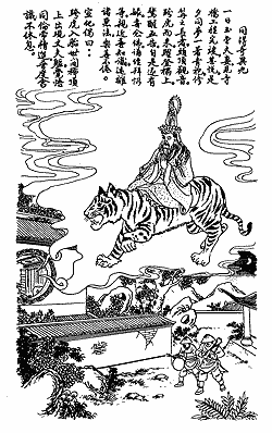 Astride a tiger, entering the womb, came one