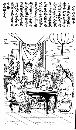 The Commander further asked, "What use are those statues made of clay and wood? Isn't it a waste of money?" The Master answered, "The Buddha said that the marks of Dharma are just its symbols, the latter being used to represent the Dharma. Without representation through marks, the Dharma would not develop. Moreover, its expression brings about an attitude of reverence and awe, without which there are no evil deeds from which people would refrain, and no good deeds which they would perform. Calamity and chaos would result. Consider how they carved the statues of the sage Confucius upon Ni Ch'iu Mountain and how Ting Lan sculpted a wooden image of his deceased parents21. These Images in the ancestral halls of China, as well as the copper ones from various other countries, serve as a place of reliance for the heart of man. They can foster an attitude of reverence, the effect of which is inconceivable. But in an ultimate sense, if one sees that all marks are no marks, one sees the Tathagata." Li was pleased and invited the Master to sit and chat, and called for tea and cakes.