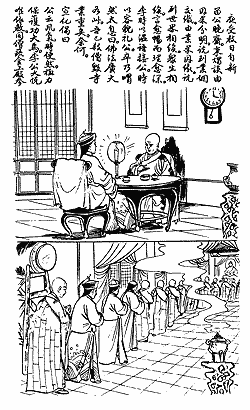 Together with the monks, eating pure food, he joined them in the ceremonies.