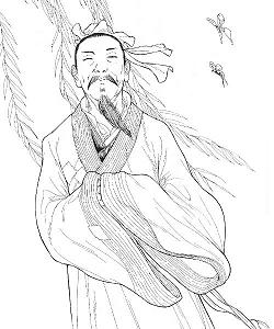 庄周的脖子细细的,面枯无肉,乾巴巴的,但个子一定长得很高,和藤子差不多。这样细细长长的一个人,也就是一个怪人。他喜欢老子的学说,清净无为,就立志出世,学习老子,所以世人称他们为“老庄”。