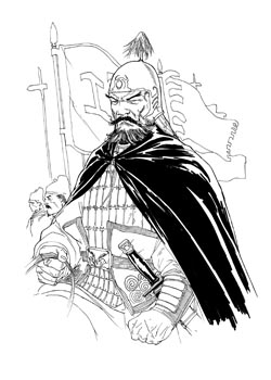 霸王姓项,名籍,字羽。秦 下相人。年少尚武,力能扛鼎,气可拔山。秦末,陈涉 吴广,揭竿而起,天下大乱。其叔项梁,举兵伐秦。后梁死,羽代领其军,大破秦兵,所向无敌。入关杀秦王 子婴,火焚咸阳,自称西楚霸王,以刘邦为汉中王。鸿门宴,仁柔寡断,铸成大错。终于九里山误中埋伏,全军覆没,无颜见江东父老,自刎乌江,令人叹惜不已!