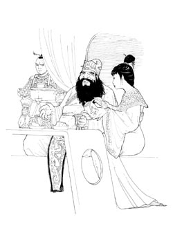 那么这样子,王允也没有办法,就天天很愁的。这个丫环见到王允这么样子忧愁,就问他说:“老爷,您有什么困难的事情,可以告诉告诉我。我若能给你分忧,我是愿意帮你分担这个忧愁。”王允说:“你一个女人,怎么可以分担我的忧愁?”王允一想,计上心头:好,试一试,用一个美人计!